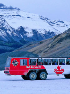 餐后,搭乘【冰原雪车Snowcoach(必付)】行走在【阿萨巴斯卡冰川Athabasca Glacier】之上,感受大自然亿万年的累积。